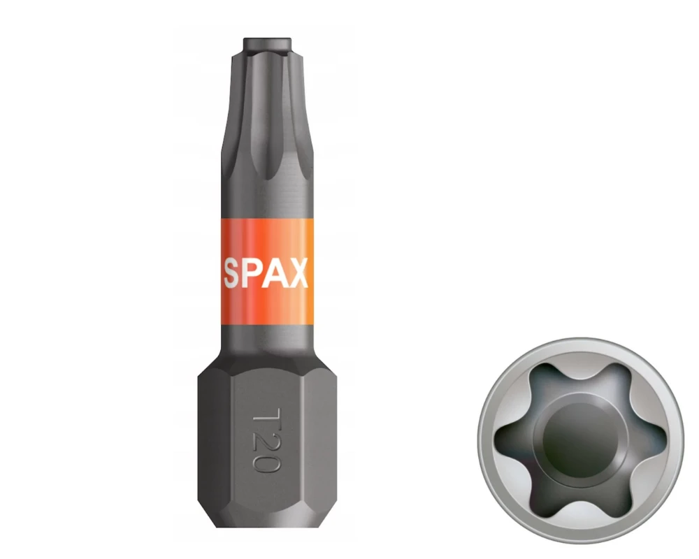 - Końcówki wkrętakowe SPAX do wkrętarek ręcznych, wkrętarek elektrycznych i akumulatorowych, wiertarek i wkrętarek pneumatycznych imponują dokładnym dopasowaniem, optymalnymi wartościami twardości i przenoszenia momentu obrotowego oraz długą żywotnością.