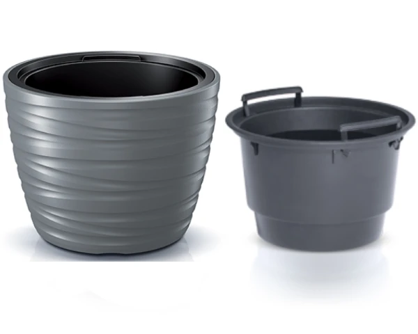 Piękna doniczka do domu jest dostępna w zestawie 2w1 - razem z wkładem 40L. Dzięki takiemu rozwiązaniu oszczędzamy ziemię potrzebną do zapełnienia doniczki.