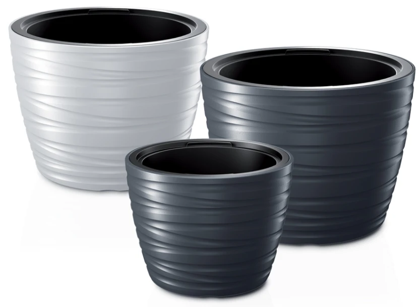 Piękna doniczka do domu jest dostępna w zestawie 2w1 - razem z wkładem 40L. Dzięki takiemu rozwiązaniu oszczędzamy ziemię potrzebną do zapełnienia doniczki.