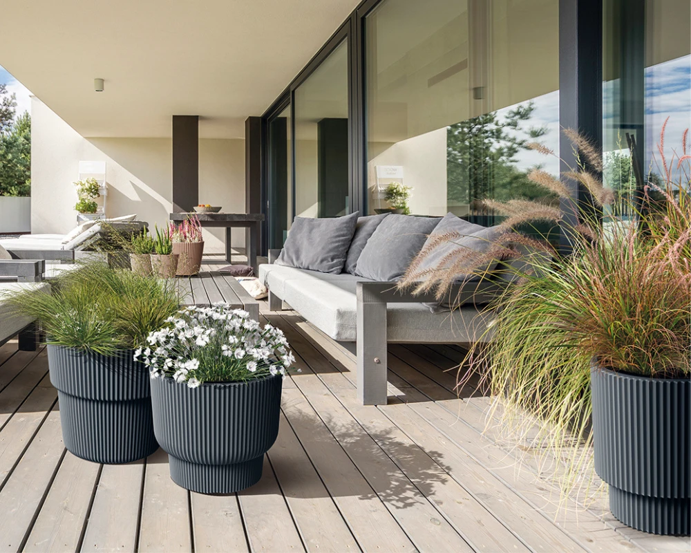 Mrozoodporna doniczka z wkładem w nowoczesnym stylu w kolorze antracytu