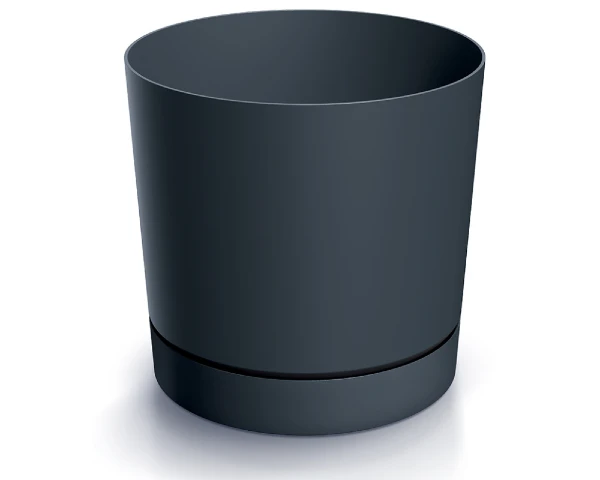 Doniczka z podstawką o pojemności 35 litrów. Prosty, elegancki kształt antracytowej doniczki na kwiaty łatwo dopasować do wystroju domu i biura.