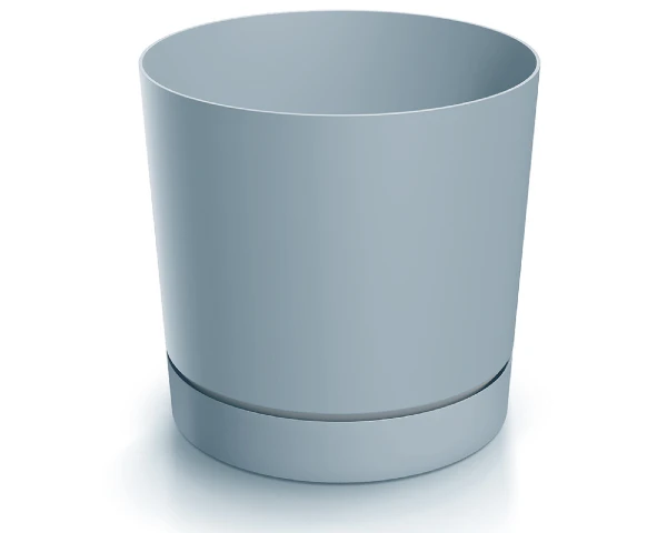 Doniczka z podstawką o pojemności 35 litrów. Prosty, elegancki kształt szarej doniczki na kwiaty łatwo dopasować do wystroju domu i biura.