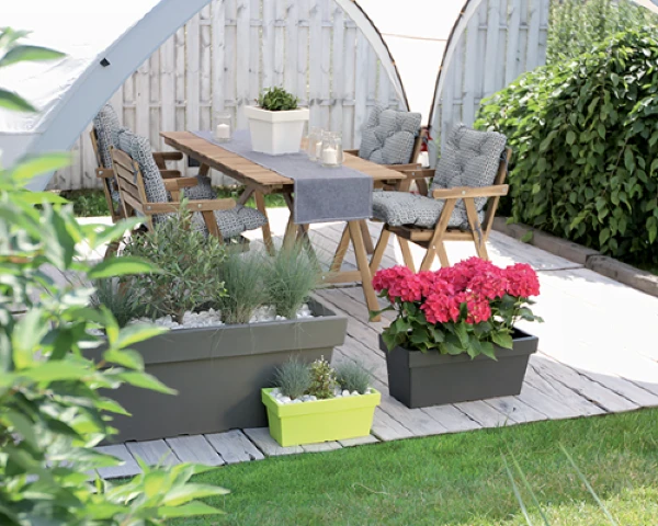 Duża donica prostokątna dobrze komponuje się zarówno z klasycznymi, jak i nowoczesnymi elementami wystroju mieszkania i ogrodu. Na spodzie donicy znajdziesz specjalne kółka, które pozwalają na łatwe przestawianie donicy.