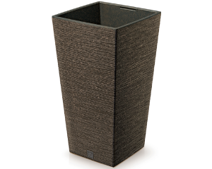 Doniczka kwadratowa wykonana z tworzywa z domieszką drewna, dzięki czemu jej powierzchnia ma ziarnistą strukturę. Donica wysoka posiada wewnętrzny wkład o pojemności 14 litrów, który zapobiega przelaniu korzeni i zmniejsza ilość wykorzystywanego podłoża.