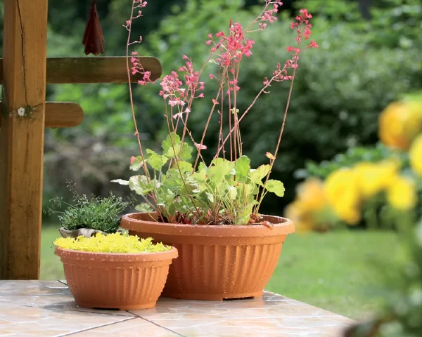Doniczkę Terra polecamy miłośnikom prostoty i praktyczności. Klasyczny, okrągły kształt pozwoli Ci stworzyć doskonałą oprawę dla każdej rośliny tarasowej, czy balkonowej.