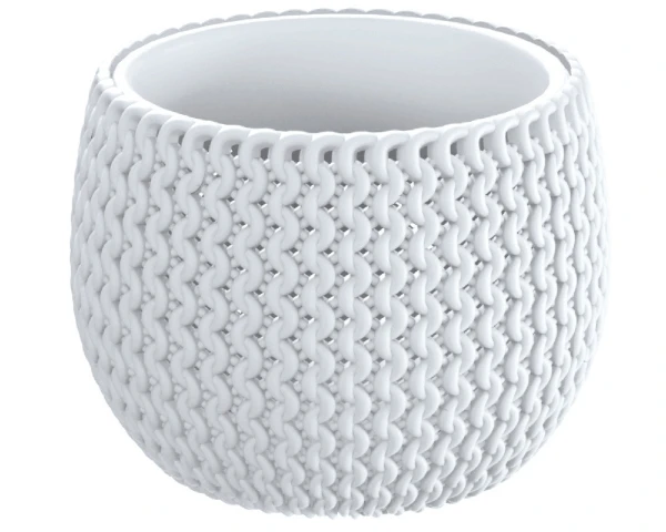 Doniczka Splofy Bowl w kształcie kuli z serii Texture & Woven o pojemności 1,4 litra. Doniczka okrągła inspirowana ażurowymi splotami włóczki.
