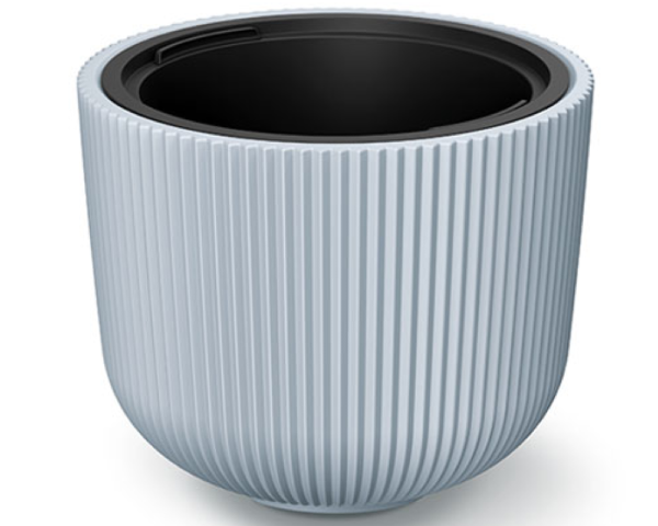 Donica mrozoodporna ryflowana jest wykonana z wysokiej jakości tworzywa, które jest odporne na działanie wysokiej temperatury, mrozu oraz promieni UV. Wyjmowany wkład chroni podłoże i korzenie przed przelaniem oraz ułatwia przestawianie donicy.