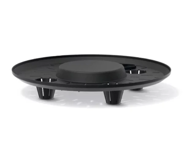 Doniczka zawiera perforowaną przekładkę drenażową zastępującą keramzyt, która zapewnia odpływ nadmiaru wody, oddzielając korzenie od dolnej, wilgotnej warstwy podłoża.