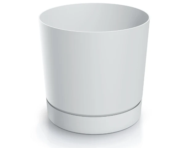 Doniczka z podstawką o pojemności 8 litrów. Prosty, elegancki kształt białej doniczki na kwiaty łatwo dopasować do wystroju domu i biura.