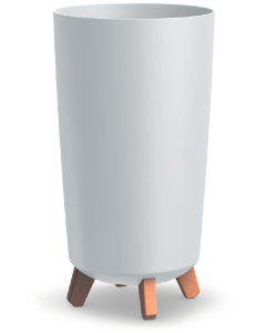 Donica wysoka o średnicy 19,5 cm i wysokości 37 cm. Prosty kształt i matowe wykończenie podkreślają uniwersalny styl donicy. Doniczka na nóżkach posiada wewnątrz wkładkę drenażową, która zastępuje keramzyt i odprowadza nadmiar wody, chroniąc korzenie przed przelaniem.