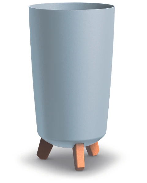 Donica wysoka o średnicy 19,5 cm i wysokości 37 cm. Prosty kształt i matowe wykończenie podkreślają uniwersalny styl donicy. Doniczka na nóżkach posiada wewnątrz wkładkę drenażową, która zastępuje keramzyt i odprowadza nadmiar wody, chroniąc korzenie przed przelaniem.