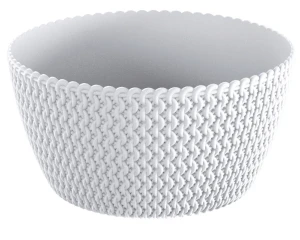 Biała misa Prosperplast Splofy Bowl została wykonana z wysokiej jakości materiałów, odpornych na promienie UV. Jej śnieżnobiały kolor nie wyblaknie pod wpływem słońca. Osłonka z wyglądu przypomina gruby, wełniany splot co sprawia, że każda kompozycja kwiatowa zyskuje lekkość i luksusowy charakter.