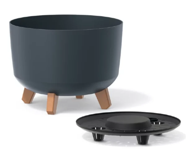 Donica w kształcie misy o pojemności 21,5 litra. Prosta forma i matowe wykończenie podkreślają uniwersalny styl donicy. Doniczka posiada perforowaną wkładkę drenażową, która zapewnia odpływ nadmiaru wody.