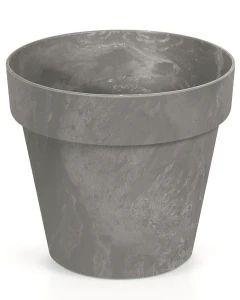 Doniczka okrągła o pojemności 1,2 litra. Donica jest wykonana z solidnego tworzywa sztucznego, które imituje wygląd betonu. Doniczka w kolorze marengo nadaje się w 100% do recyklingu.