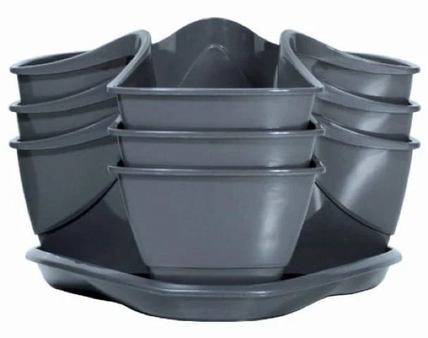 Doniczki można rozdzielić na trzy pojedyncze pojemniki. Doniczki posiadają specjalne wgłębienia w dnie, gdzie zbiera się nadmiar wody.