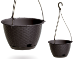kolekcji RATOLLA z charakterystycznym, wywiniętym rantem oraz fakturą imitującą plecionkę rattanową. Dostępna z plastikowym lub stalowym systemem podwieszania. W podstawce znajduję się otwór pomocny w podlewaniu.