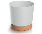 Doniczka z podstawką o pojemności 22 litrów. Prosty, elegancki kształt białej doniczki na kwiaty został połączony z kontrastująca podstawką w ciepłym kolorze drewna.