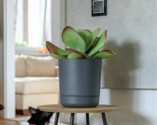 Antracytowa doniczka na kwiaty w stylowym i minimalistycznym wydaniu. Niezwykle prosta forma sprawia, że doniczki z serii Satina Eco Sleek doskonale komponują się z każdym stylem wnętrz domów i mieszkań.