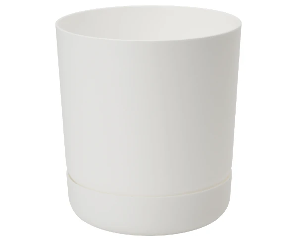 Okrągła doniczka wykonana jest z wysokiej jakości tworzywa sztucznego. Zapewnia to odporność na promieniowanie UV, dzięki czemu sprawdzi się jako doniczka na parapet bez ryzyka płowienia.