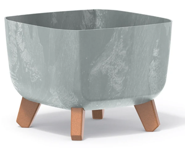 Kwadratowa doniczka na kwiaty na nóżkach w kolorze szarym