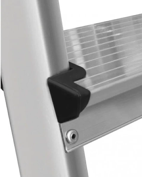 Drabina Drabest jest wykonana z wysokogatunkowego aluminium, które łączy lekkość z odpornością na korozję i uszkodzenia mechaniczne. Solidne, nitowane szczeble zabezpieczono plastikowymi osłonami, a stabilność całej konstrukcji wzmacniają trwałe podłużnice. Dodatkowe bezpieczeństwo zapewniają antypoślizgowe stopki oraz pałąk o długości 60 cm. To niezawodna drabina domowa, idealna do codziennych prac, takich jak malowanie, mycie okien czy sięganie do wyżej położonych półek.