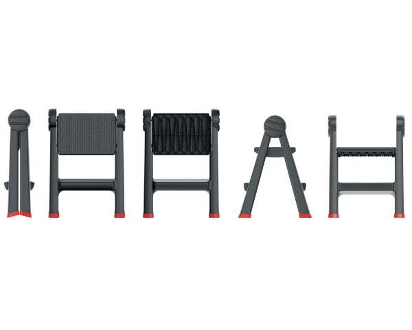 Drabina jest dwustronna, co oznacza, że możesz z niej korzystać z obu stron. To idealne rozwiązanie, jeśli potrzebujesz dostępu do różnych poziomów lub pracujesz w miejscach, gdzie brakuje przestrzeni. Drabina do warsztatu wykonana z trwałego tworzywa sztucznego o wzmocnionej konstrukcji, dzięki temu jest jest lekka, a jednocześnie stabilna i wytrzymała. Z łatwością obsłuży obciążenie do 150 kg, zapewniając bezpieczeństwo podczas użytkowania, co zapewnia certyfikat EN-14183:2003. Stopnie i stopki drabiny są wyposażone w antypoślizgowe powierzchnie. Stopki drabiny wykonane z elastomeru antypoślizgowego gwarantują stabilność nawet na śliskich podłożach, co zapewnia maksymalne bezpieczeństwo podczas użytkowania.