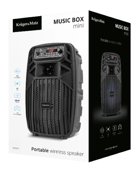 Głośnik Bluetooth bezprzewodowy Music Box Mini marki Kruger Matz, łączy ze sobą funkcjonalność oraz niską cenę. Posiada wejście mikrofonowe, które pozwoli zorganizować wieczór karaoke. Ty i Twoi znajomi wolicie potańczyć? Dwa przetworniki, w jakie został wyposażony ten głośnik – 6,5- oraz 1-calowy – zagrają z mocą 10 W.