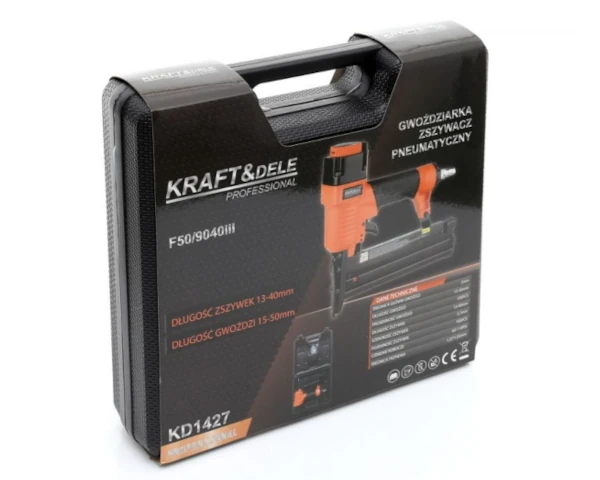 Wielofunkcyjna gwoździarka 2w1 Kraft&Dele KD1427 znajdzie szerokie zastosowanie w każdym domu i warsztacie. Produkt posiada funkcję zszywacza zarówno jak i gwoździarki.