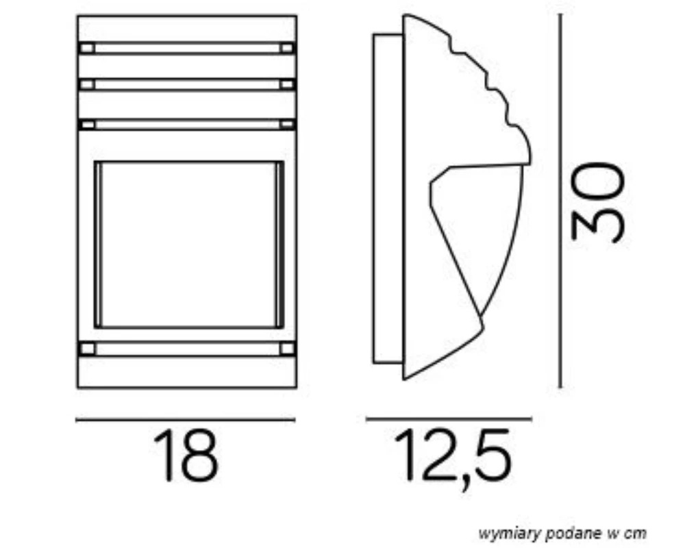 Kinkiet ogrodowy cechuje się prostym i nowoczesnym designem, który idealnie wpasuje się w różne style architektoniczne. Jego kompaktowe wymiary umożliwiają łatwy montaż na elewacji, zapewniając funkcjonalne i stylowe oświetlenie zewnętrzne.