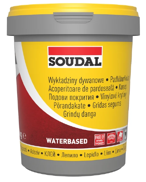 - Możesz używać kleju Soudal 26A do montażu wykładzin podłogowych z linoleum, winylu, PCV czy dywanowych na podkładzie tekstylnym.