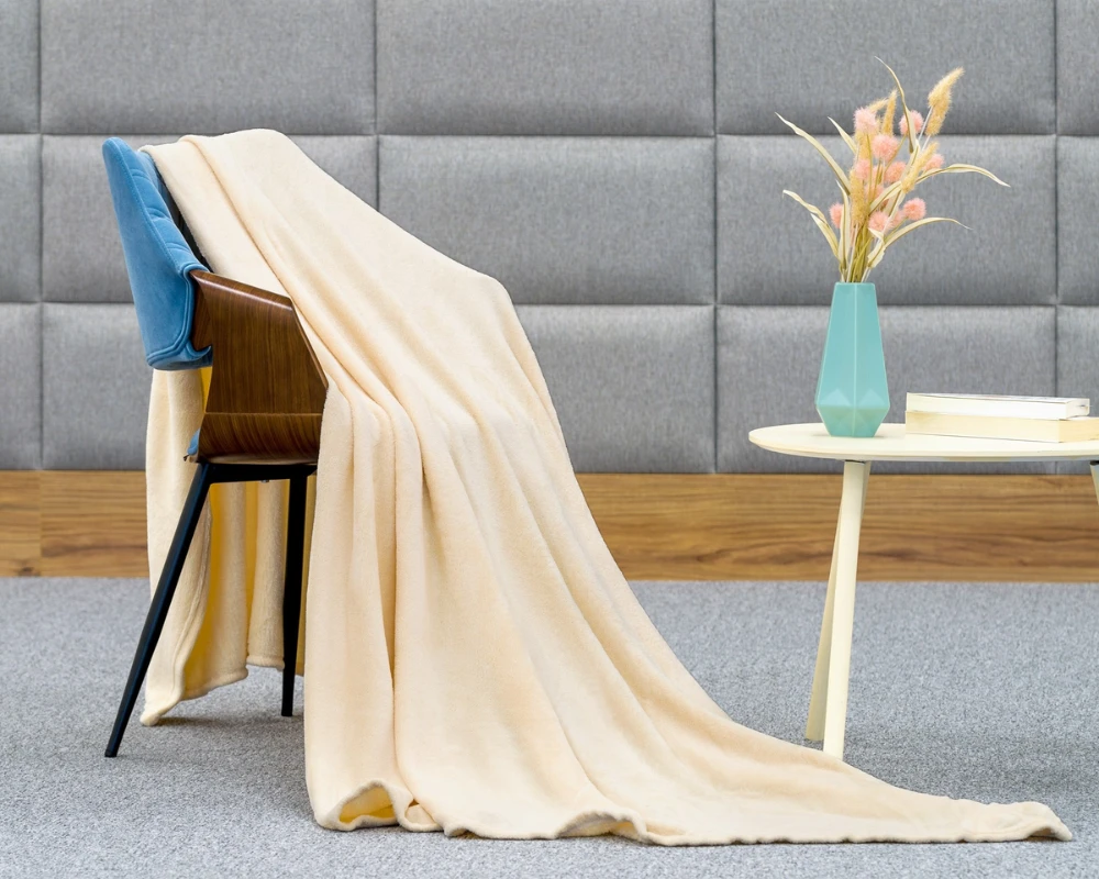 Odkryj komfort w dużym stylu z kocem polarowym w pięknym kremowym kolorze. To nie tylko koc, to przytulna otulina, która wprowadzi do Twojego domu wyjątkowy urok i ciepło.