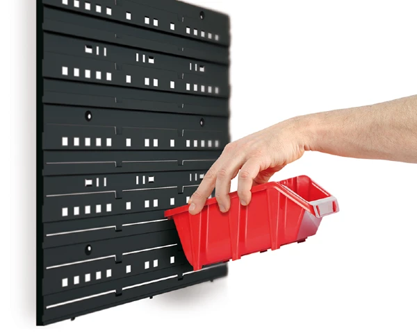 Duża, podłużna kuweta magazynowa w kolorze czerwonym łatwo i przystępnie pomoże Ci uporządkować miejsce pracy. Możesz w niej przechowywać zarówno te małe, jak i nieco większe elementy. Zadbaj o schludność i bezpieczeństwo!