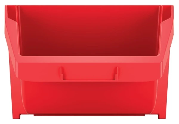 Ergonomiczny design z wyprofilowanym dnem umożliwia wygodne wysypywanie zawartości, a solidna konstrukcja zapewnia stabilność, nawet gdy kuweta jest wypełniona. Dodatkowo, możliwość układania pojemników jedna na drugą pozwala na oszczędność miejsca w przestrzeni roboczej, pomagając utrzymać porządek i organizację.