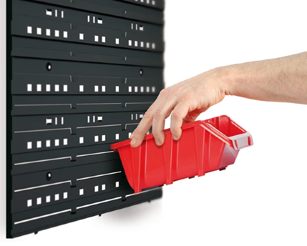 Mały, podłużny pojemnik do warsztatu w kolorze czerwonym - sposób na uporządkowaną przestrzeń