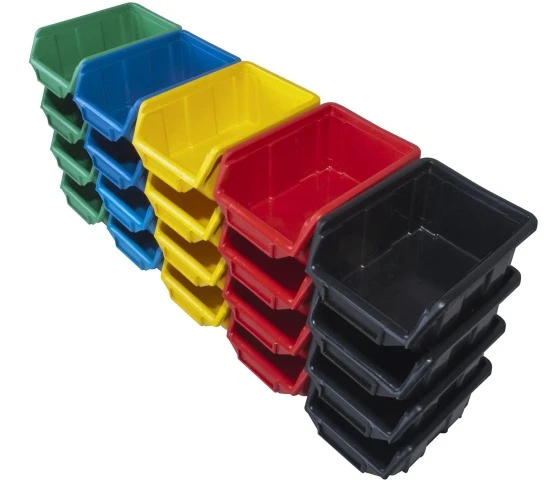 Kuweta magazynowa wykonana z tworzywa sztucznego pochodzącego z recyklingu. Daje się układać poprzez piętrowanie.