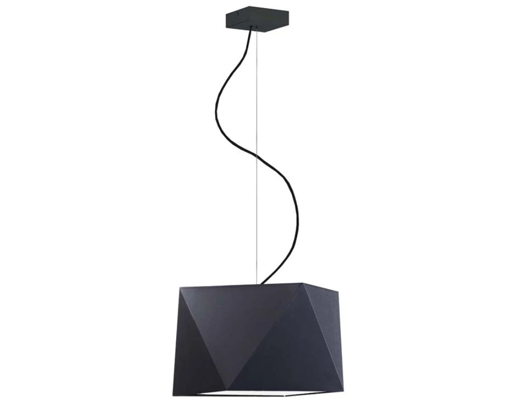 Estetyczna podsufitka podtrzymuje wiszący pod nią abażur przypominający diament o przekątnej 45 cm i wysokości 24 cm.