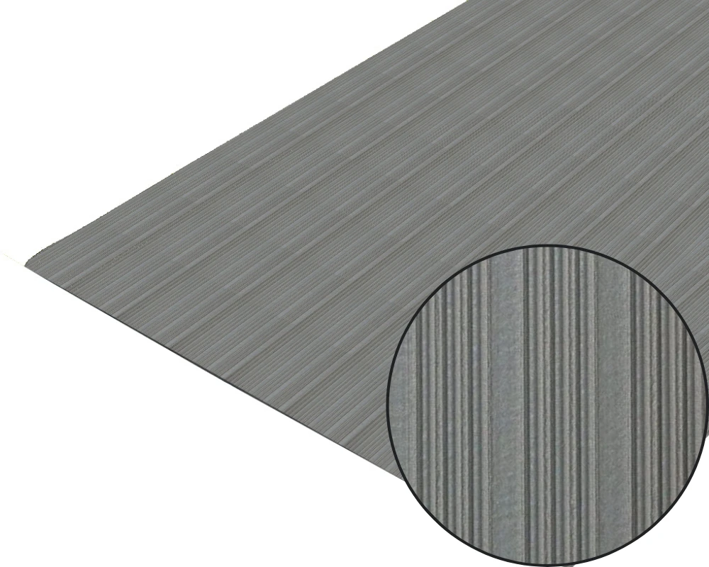 Stylowa, prążkowana powierzchnia zapewnia atrakcyjny wygląd. Dostępna w formie mat i w rolkach. Przetestowana pod kątem odporności ogniowej zgodnie z BS EN 13501-1.