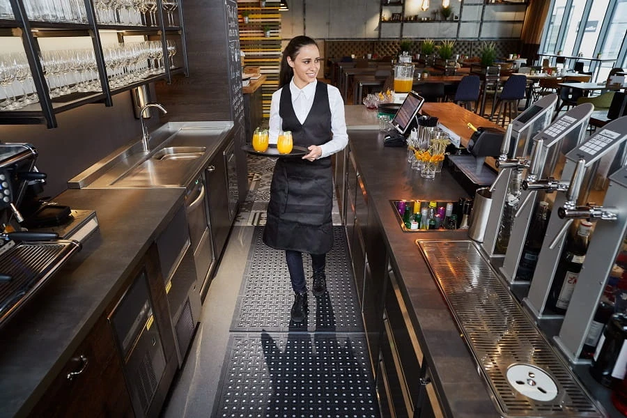 Ma perforowaną konstrukcję, która zapewnia skuteczny drenaż płynów. Niezależnie od tego, czy będzie to woda, sok, czy inna ciecz, zostanie ona skutecznie odprowadzona z maty, minimalizując prawdopodobieństwo poślizgnięcia się.
