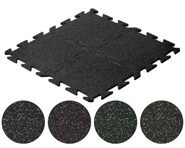 Mata do siłowni w formie puzzli to nowoczesna gumowa podłoga, która ma doskonale amortyzuje i wygłusza. Wersja mozaikowa to mata w kolorze czarnym wraz z dodatkiem granulatu EPDM. Kolorowy granulat EPDM uatrakcyjnia płytę wizualnie, co przekłada się na mniejszą widoczność zabrudzeń. Płyta z szarymi granulkami jest najczęściej wybieranym dodatkiem kolorystycznym i w największym stopniu redukuje wizualnie widoczność zabrudzeń (np. śladów po obuwiu). Na każdym elemencie jest wytłoczony wzór 4 puzzli. Na życzenie możliwy jest inny dodatek kolorystyczny po wcześniejszym kontakcie - sklep@stamats.pl