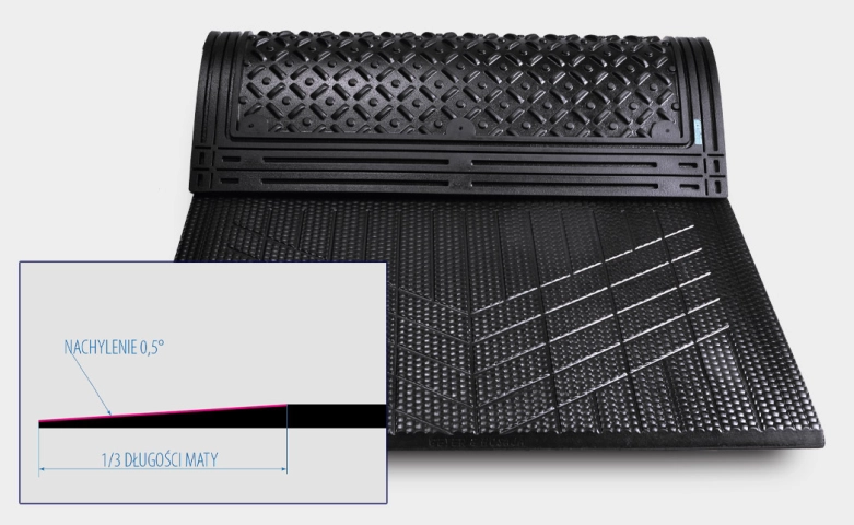 Maty legowiskowe imitują naturalne podłoże oraz podwyższają komfort odpoczynku zwierząt. Dzięki zastosowaniu najwyższej jakości materiałów, pełnią funkcję doskonałego podkładu izolacyjnego oraz obniżają koszty hodowli. Specjalna budowa oraz antypoślizgowa struktura maty powoduje zmniejszenie ryzyka urazów stawów i racic/kopyt, co w dużej mierze wpływa na zwiększenie wydajności. Stosowanie mat gumowych ułatwia utrzymanie czystości, co (w przypadku krów) bezpośrednio przekłada się na dobrostan bydła i jakość uzyskiwanego mleka.