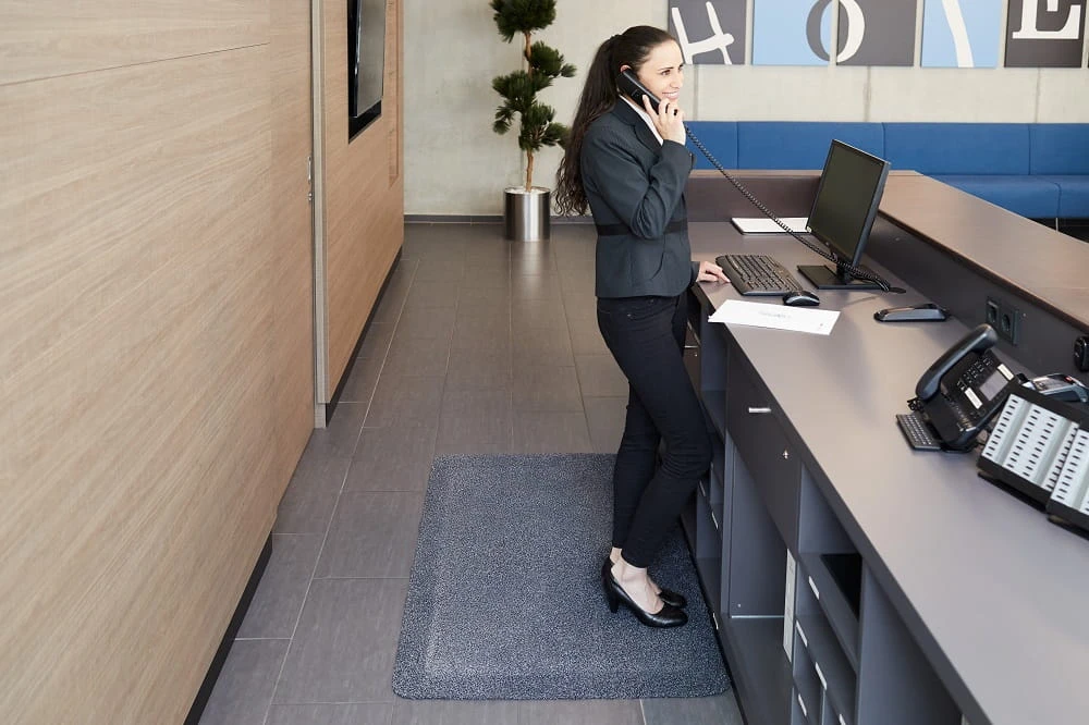 ergonomiczna mata wewnętrzna. Antyzmęczeniowa konstrukcja dedykowana na stanowiska, gdzie w głównej mierze pracuje się na stojąco. Świetna do firm, hoteli, sklepów, salonów, biur, przy maszynach, recepcjach, ladach, jak również stanowiskach informacyjnych i punktach sprzedaży POS.