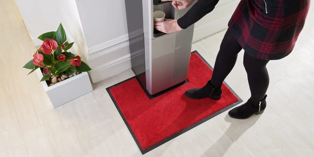 Tekstylna mata, która chroni użytkownika dozownika z wodą przed wypadkiem. Bogata oferta kolorystyczna.