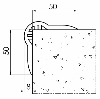 Narożnik posiada specjalny kształt zaokrąglenia, dzięki któremu jest niwelowany ostry kąt naroża ściany i bardzo dobrze amortyzuje uderzenia, doskonale chroni osoby przed przypadkowymi urazami.