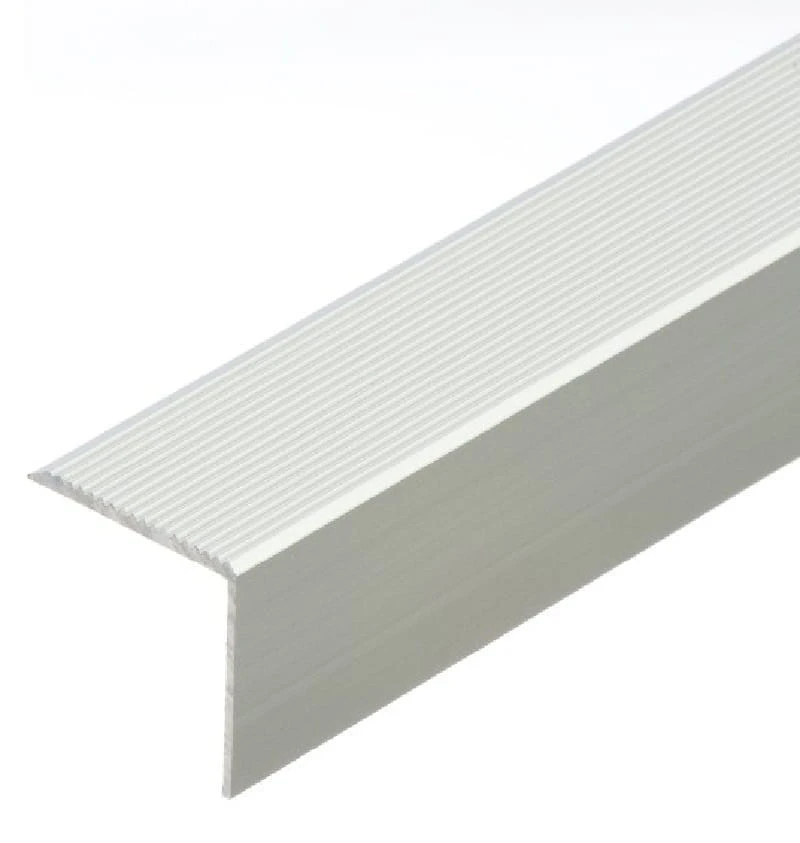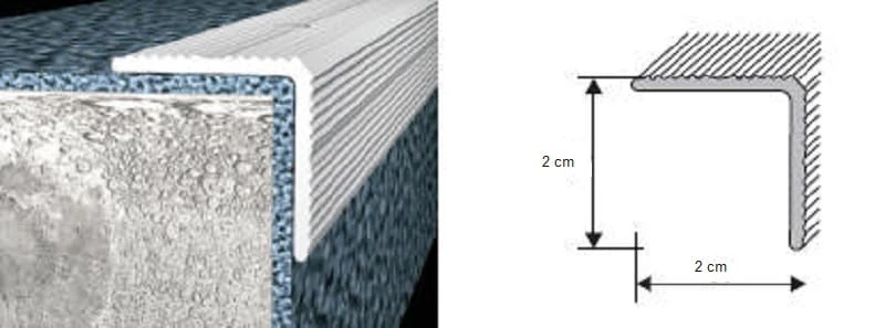 Narożnik który ochrania krawędzie stopni. Profil posiada powierzchnię ząbkowaną, antypoślizgową, dzięki czemu schody stają się bezpieczne w użytkowaniu.