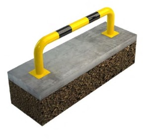 Odbojnica prosta stalowa do zabezpieczenia ludzi, urządzeń, ścian przed przed wypadkami i urazami na parkingach, halach produkcyjnych, magazynowych, przed wózkami widłowymi na drogach komunikacyjnych w przemyśle.