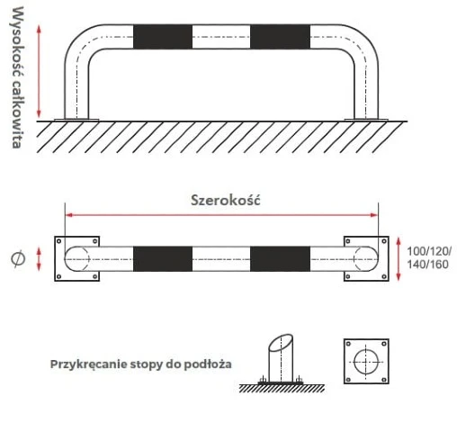 Na zamówienie możemy wykonać odbojnice o dowolnych wymiarach z rur o średnicy od 48,3 mm do 219,1 mm.