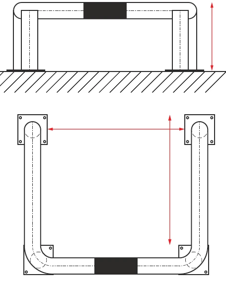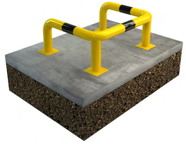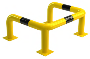 Odbojnica stalowa U4 wysokość 800mm ramiona 600x600 mm o średnicy rur 76mm. Stosowana jako ochrona ścian, narożników, maszyn i urządzeń linii produkcyjnej oraz regałów magazynowych. Pełni również funkcję ograniczników i separatorów parkingowych.