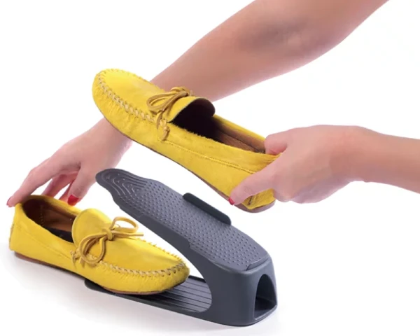 Organizer na obuwie - praktyczne i użyteczne rozwiązanie, które zapewni porządek w garderobie lub w szafce na buty. Dzięki organizerowi na buty Spacyshoe możesz zaoszczędzić do 50% miejsca na półkach.