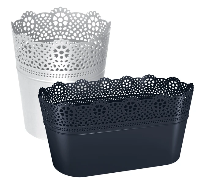 Osłonka ażurowa na doniczkę Lace z serii Style & Chic to świetny produkt do podkreślenia piękna naszych ulubionych rośliny. Doniczki są okrągłe, posiadają podłużny kształt i świetnie odzwierciedlają misternie wycinane ornamenty co z powodzeniem wpisuje się w aktualne trendy.