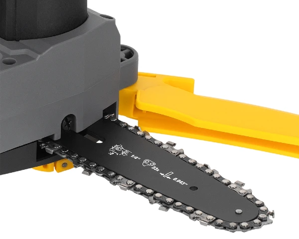 Pracujący z prędkością 4,9 m/s łańcuch użyty w pilarce Rebel ma podziałkę 6,35 mm oraz grubość ogniw wynoszącą 1,1 mm, co zapewnia płynną i skuteczną pracę. Z kolei prowadnica o długości 152 mm w połączeniu ze średnicą cięcia wynoszącą 125 mm ułatwia skuteczne cięcie gałęzi o różnej grubości, nawet w trudno dostępnych miejscach.